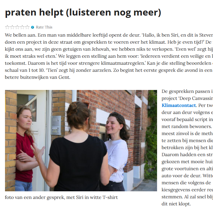 Ik werk graag participatief, en denk na over hoe je daar als ontwerper ethisch en kritisch naar kunt kijken. Het betrekken van verschillende mensen in het proces is namelijk niet alleen een kans om het project te verbeteren, maar óók om die mensen bewust te maken van de urgentie van de transitie. Ik studeerde af op inclusieve participatie in duurzaamheidstransities. Daarin deed ik onder andere onderzoek naar ‘agonisme’ – een politieke term die mij eigenlijk oproept minder op zoek te gaan naar mensen die het met mijn projecten eens zijn, en meer naar mensen die het oneens zijn. Daar zit namelijke de wrijving, de interessante problematiek – de ‘transitiepijn’.